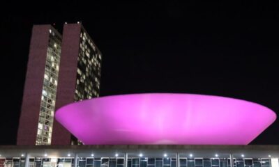 O Congresso volta a receber iluminação rosa desta sexta (18) até segunda-feira (21) como parte das ações de conscientização sobre a prevenção e diagnóstico precoce do...