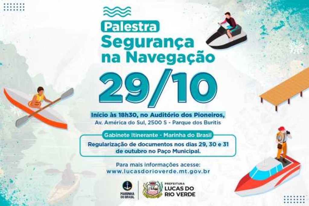 A Prefeitura de Lucas do Rio Verde, por meio da Secretaria de Segurança Pública, realizará, na noite desta terça-feira (29), uma palestra com o tema “Segurança na Navegação”,