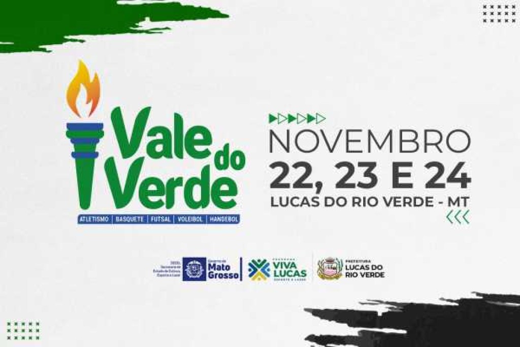 A Prefeitura de Lucas do Rio Verde, por meio da Secretaria de Esporte e Lazer, convida a população para prestigiar os Jogos Vale do Verde. Mais de 450 atletas participarão da competição regional, que foi criada em 1991.