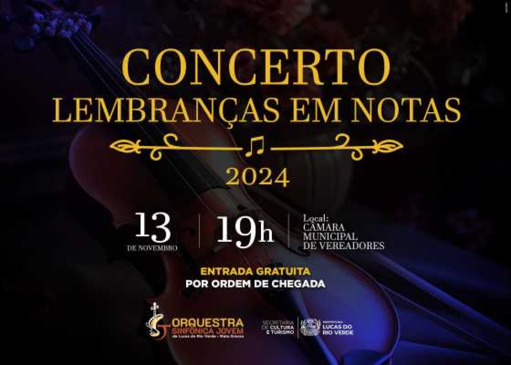 A noite de quarta-feira (13), será marcada pela apresentação da Orquestra Sinfônica Jovem de Lucas do Rio Verde, que realizará um concerto intitulado “Lembranças em Notas”, no auditório da Câmara Municipal. O evento terá início às 19h, e a entrada é gratuita.