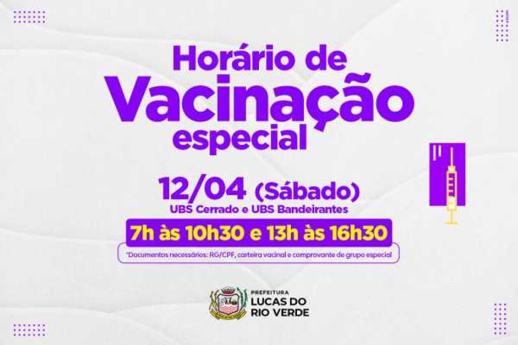 UBSs Cerrado e Bandeirantes, abertas, excepcionalmente, neste sábado (12), das 7h às 10h30 e das 13h às 16h30.