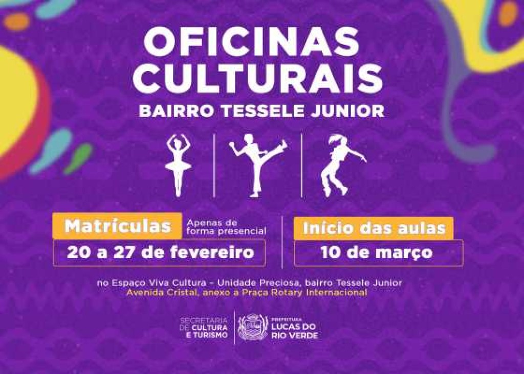 As matrículas estarão abertas de 20 a 27 de fevereiro, apenas de forma presencial, no Espaço Viva Cultura – Unidade Preciosa, localizado na Avenida Cristal, anexo a Praça Rotary Internacional, no bairro Tessele Junior. As aulas começam no dia 10 de março.