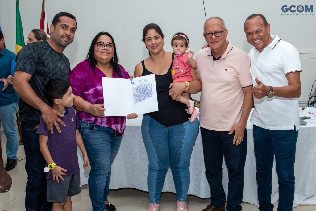 Mais uma centena de rondonopolitanos receberam a escritura da casa própria nesta sexta-feira (28). A entrega faz parte do programa de regularização fundiária da Prefeitura Municipal de Rondonópolis “Morar Legal”. Com este documento do cartório, os moradores passam a ser efetivamente os donos titulares dos imóveis em que residiam há décadas.