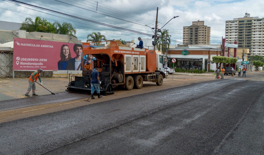 A Prefeitura de Rondonópolis deu início essa semana nos serviços de microrrevestimento asfáltico nas principais ruas e avenidas da cidade. A aplicação do material começou pela rua Dom Pedro II, no entroncamento com a avenida Lions Internacional, trecho que está interditado neste sábado (05).