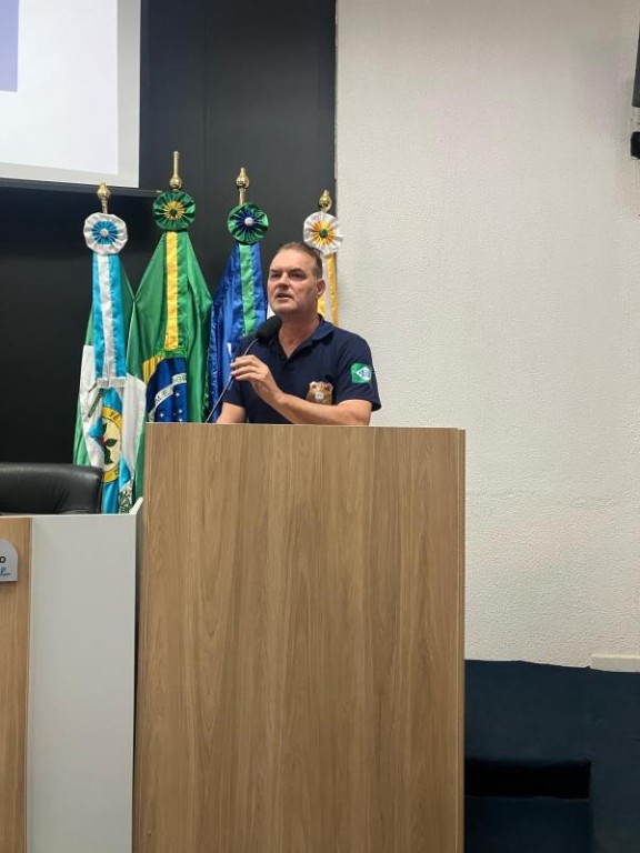 Em participação na sessão do Legislativo Municipal nesta manhã, 23 de abril, o secretário de Secretaria Municipal de Segurança Pública, Trânsito e Defesa Civil (Semsep), Adriano Denardi, pontuou ações e estratégias desenvolvidos pela pasta. Denardi destacou que a Semsep tem como atribuições principais “prestar apoio material e de pessoal às instituições de segurança alocadas no município; além disso, a Secretaria coordena a Guarda Municipal de Trânsito, o Departamento de Sinalização de Trânsito e a Defesa Civil”, pontua.