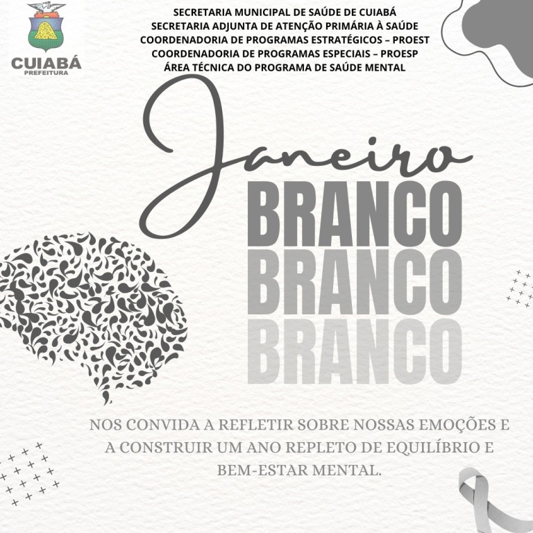 A Prefeitura de Cuiabá, por meio da Secretaria Municipal de Saúde (SMS), está promovendo diversas atividades ao longo de janeiro como parte da Campanha Janeiro Branco, com objetivo conscientizar a população sobre a importância de cuidar da saúde mental.