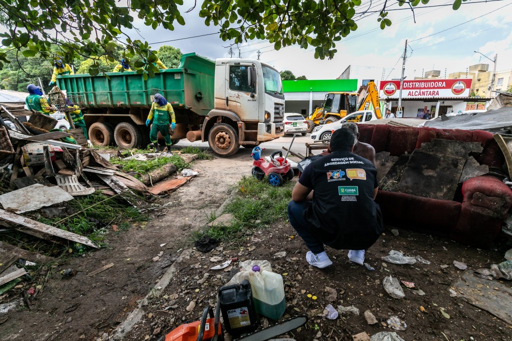 A Prefeitura de Cuiabá, em uma ação conjunta, realizou nesta terça-feira (1°), a remoção de um bolsão de descarte irregular no bairro Residencial Despraiado, retirando aproximadamente 30 toneladas de entulho e lixo acumulado. Além do serviço de limpeza, a iniciativa também prestou atendimento assistencial a uma pessoa em situação de rua que residia no local há cerca de 18 anos. O cidadão foi encaminhado ao Centro de Referência Especializado para População em Situação de Rua (Centro POP), onde receberá o devido acolhimento.