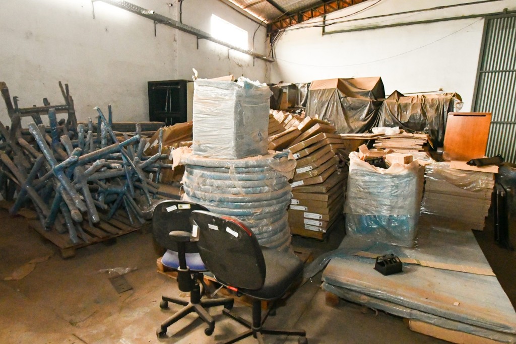 Uniformes escolares, livros, móveis de escritório, equipamentos de cozinha, bebedouros, armários, materiais de limpeza (entre eles 7 mil litros de hipoclorito de sódio, que deveriam estar acondicionados em locais específicos por se tratar de material abrasivo). Além de materiais pedagógicos como livros, brinquedos, parquinhos e colchonetes utilizados pelas unidades educacionais que atendem crianças em idade de creche e outros que se encontram estocados inadequadamente em barracão.