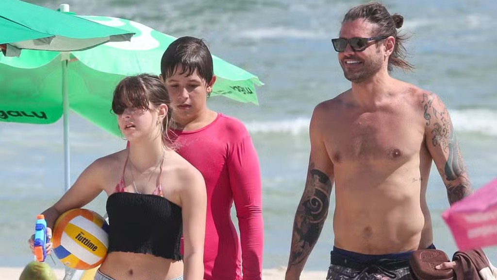 Com os filhos, Dado Dolabella curte dia de praia no Rio de Janeiro: ‘Eduardo e Ana Flor’