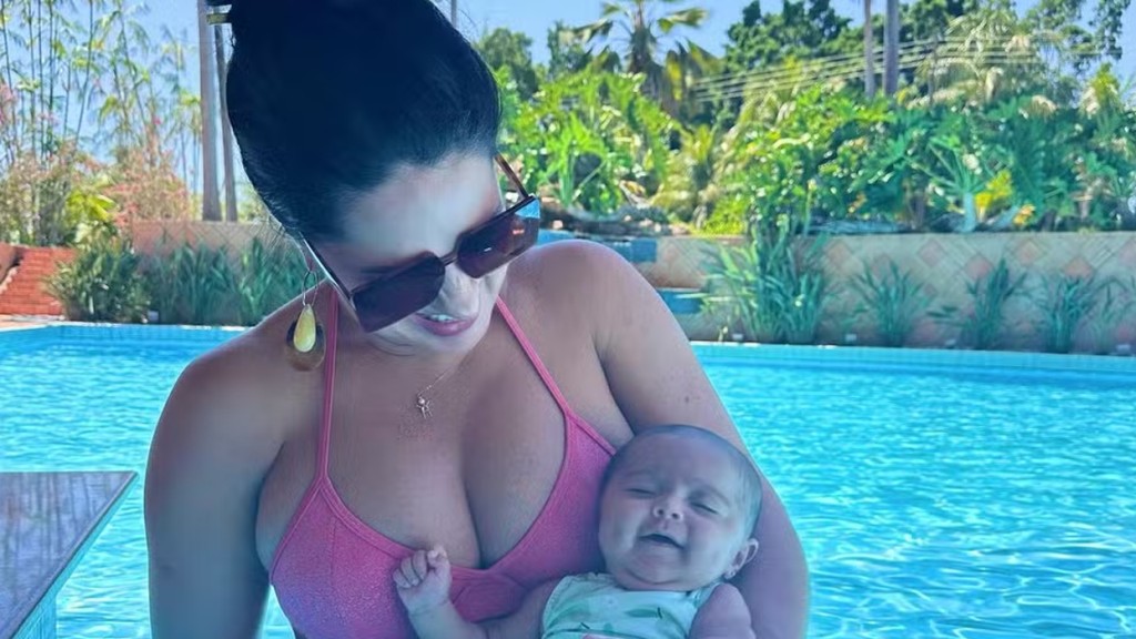 Graciele Lacerda celebra ida da filha Clara, pela 1ª vez na piscina: ‘Nosso domingo!!’