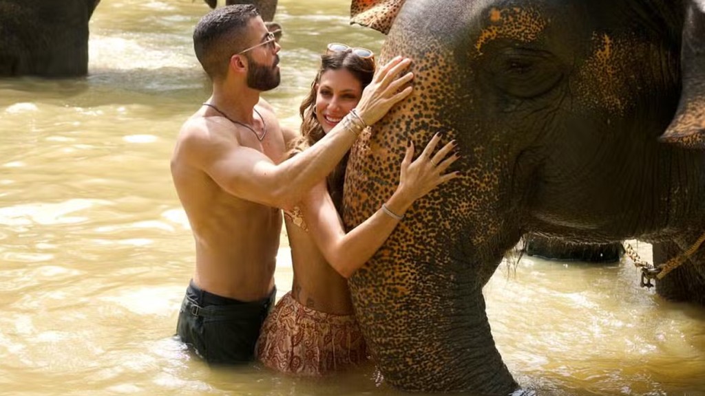 Mari Gonzalez e Pipo Marques, posam com elefantes na Tailândia: ‘Que momento único’