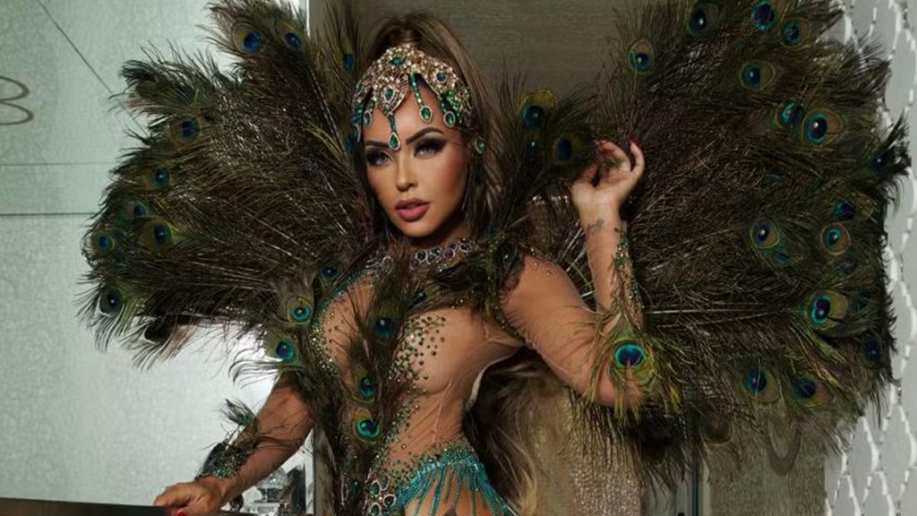 Rainha da Rosas de Ouro ensaia com 600 penas de pavão e arrasa: ‘Carnaval 2025’