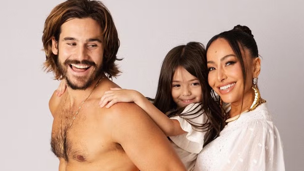Sob o pôr do sol, Sabrina Sato curte piscina com Zoe e Nicolas Prattes: ‘Domingo’