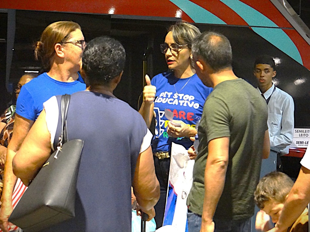 As abordagens a passageiros no Terminal Rodoviário de Cuiabá seguem nesta sexta-feira (20.12), no período noturno. A diretora de Fiscalização e Educação para o Trânsito do Detran-MT, Adriana Carnevale, reforçou a importância do Programa Rodovida e da intensificação das ações educativas e de fiscalização em prol de um trânsito mais seguro.