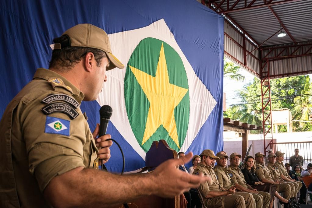Durante a solenidade, o coronel BM Flávio Glêdson Vieira Bezerra reconheceu a importância do comando do BEA no último ano para a condução de iniciativas que foram essenciais quando Mato Grosso enfrentou condições climáticas extremas, que intensificaram os incêndios florestais.