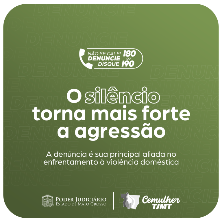 A campanha de enfrentamento à violência contra a mulher do Tribunal de Justiça de Mato Grosso, através da Coordenadoria Estadual da Mulher em Situação de Violência Doméstica e Familiar do Poder Judiciário (Cemulher/TJMT), foi iniciada neste dia 1° de novembro. A ação será veiculada ao longo do mês em todas as redes sociais do TJMT para conscientizar a população de como as vítimas podem procurar ajuda e quais são as condutas de autores de agressão contra mulher.Fonte: Tribunal de Justiça de MT – MT