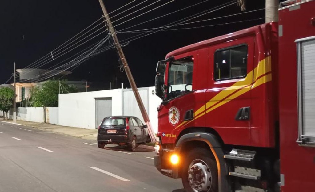 Corpo de Bombeiros é acionado para atender ocorrência de carro que atingiu poste de energia elétrica