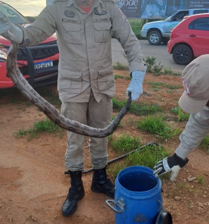 O Corpo de Bombeiros Militar de Mato Grosso (CBMMT) resgatou, na tarde desta segunda-feira (25.11), uma jiboia que foi encontrada em área urbana, no bairro Belvedere, em Primavera do Leste (a 234 km de Cuiabá).