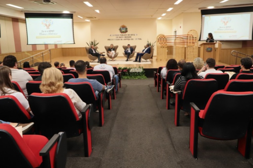 O Dia do Servidor Público foi comemorado nesta sexta-feira (25) pelo Ministério Público do Estado de Mato Grosso com o evento híbrido “Eu e o MPMT: nossas histórias”, realizado presencialmente na sede das Promotorias de Justiça de Cuiabá, com transmissão ao vivo pela plataforma Microsoft Teams. Promovida pelo Núcleo de Qualidade de Vida no Trabalho – Vida Plena, a comemoração reuniu cerca de 1,1 mil pessoas nas modalidades presencial e virtual, com o objetivo de resgatar e documentar as memórias de atuação dos membros e servidores da instituição, promovendo o reconhecimento e a valorização do trabalho realizado ao longo dos anos.