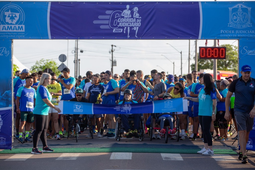Desafio, superação e conquistas. Estas são algumas palavras que descrevem um pouco do que os 1.100 atletas da 6ª Corrida do Judiciário do TJMT sentiram na manhã deste domingo (10 de novembro), com a largada em frente ao Fórum de Cuiabá. O evento, idealizado pelo Tribunal de Justiça de Mato Grosso e realizado pela Associação Mato-grossense de Magistrados (Amam), promoveu a integração de servidores(as), magistrados(as) e população, como um incentivo à qualidade de vida.