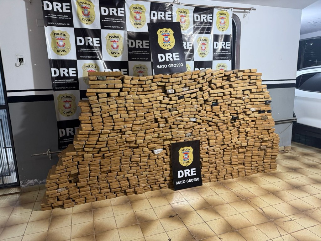 Cerca de 1,1 tonelada de maconha foi apreendida pela Polícia Civil, no final da tarde desta segunda-feira (02.12), em uma residência em Várzea Grande. Um casal, ele de 22 e ela de 23 anos, foi preso em flagrante por tráfico de drogas.