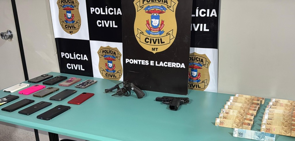 Ação investigativa da Delegacia de Pontes e Lacerda nesta terça-feira (19.11) resultou na prisão em flagrante de dez adultos, sendo cinco homens e cinco mulheres, por associação criminosa, porte ilegal de arma de fogo e corrupção de menores.