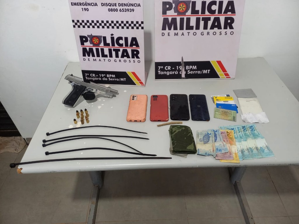 A Polícia Militar apreendeu em flagrante dois adolescentes, de 16 e 17 anos, por roubo a uma empresa de Tangará da Serra, na tarde desta terça-feira (17.12). Com a dupla, os policiais apreenderam uma pistola carregada com 12 munições.