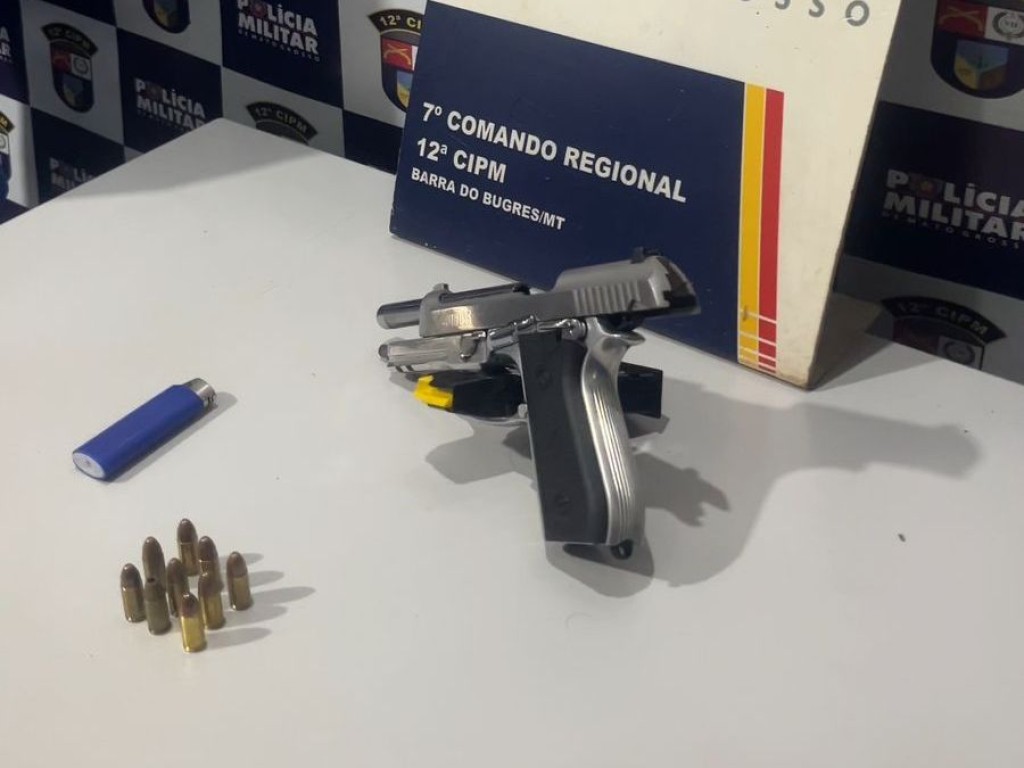 Policiais militares de Barra do Bugres prenderam em flagrante dois homens, de 21 e 19 anos, por tentativa de homicídio e porte ilegal de arma, na noite desta quarta-feira (16.10), no município. Com os suspeitos, que se apresentaram como membros de uma facção criminosa, a PM apreendeu uma pistola e nove munições.