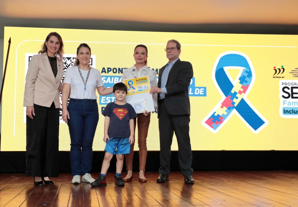 Primeira-dama de MT lança selo adesivo “Autista a Bordo” e credencial de estacionamento para pessoas com TEA