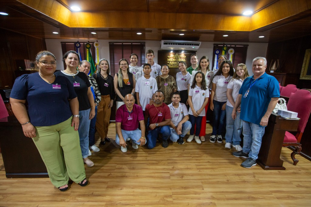 Projeto ‘Nosso Judiciário’ do Tribunal de Justiça de Mato Grosso (TJMT) recebeu nesta quinta-feira (7 de novembro), oito vereadores mirins do município de Ipiranga do Norte, a 455 km de Cuiabá, para conhecer as instalações do Palácio da Justiça e como é o papel da justiça na garantia dos direitos individuais, coletivos e sociais dos cidadãos.