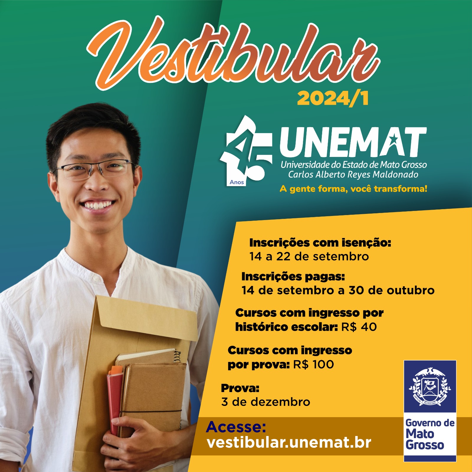 Todas as informações sobre as etapas do Vestibular e seus editais podem ser acessadas em vestibular.unemat.br