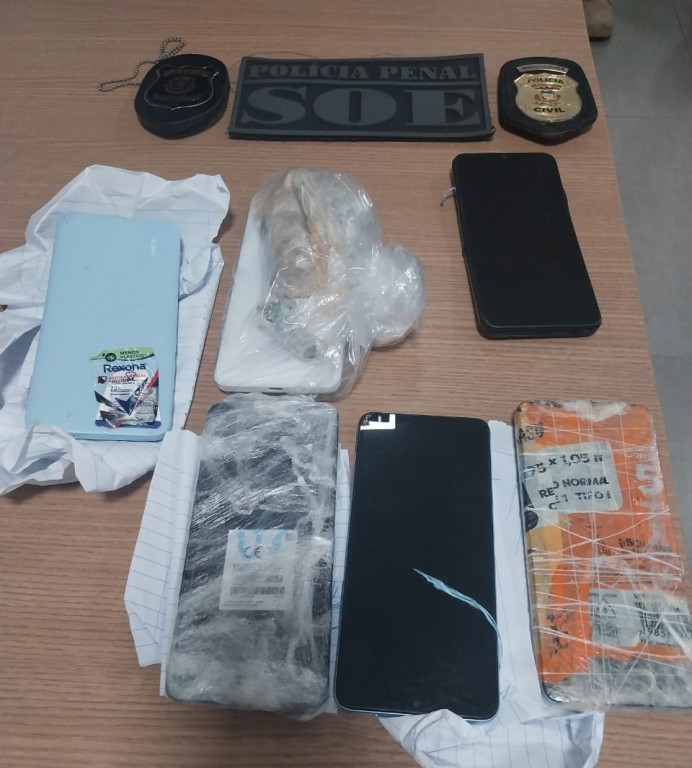 Ação integrada entre a Polícia Civil e a Polícia Penal, na noite de quarta-feira (11.12), resultou na apreensão de seis aparelhos celulares, além de talhadeira, fios, marreta improvisada e carregadores encontrados na Penitenciária Central do Estado (PCE).