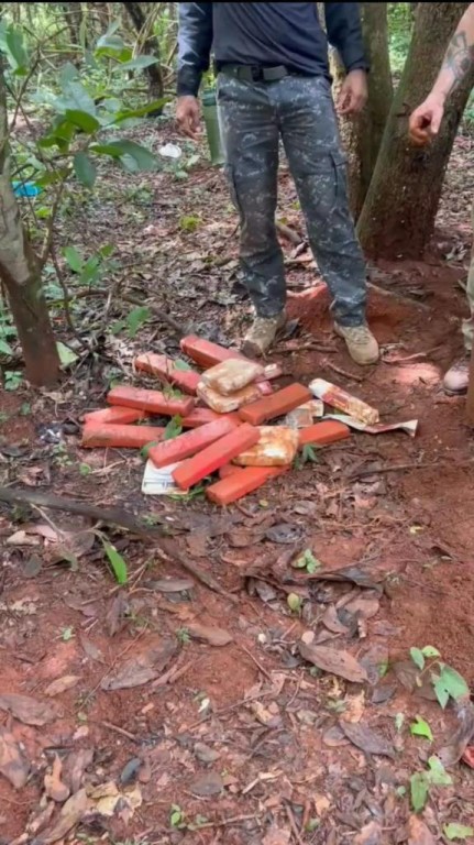 Na sequência, foi localizado um tambor enterrado, contendo os tabletes de drogas. Segundo os suspeitos, a intenção era cortar e embalar a substância para distribuição. Também foram apreendidos uma cavadeira, utilizada para enterrar o tambor, uma motocicleta usada pelos suspeitos e o aparelho celular de um deles.