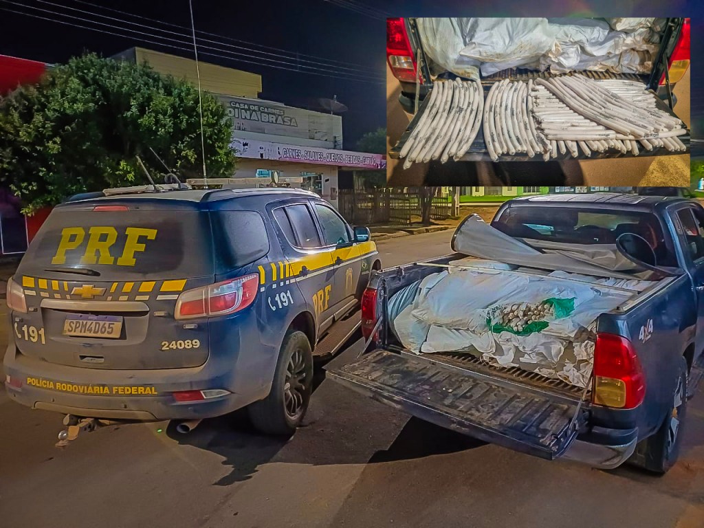 A equipe abordou uma caminhonete Toyota Hilux e, durante a verificação do veículo, encontrou dezenas de sacos contendo bastões de emulsão encartuchada, um tipo de explosivo de uso restrito.