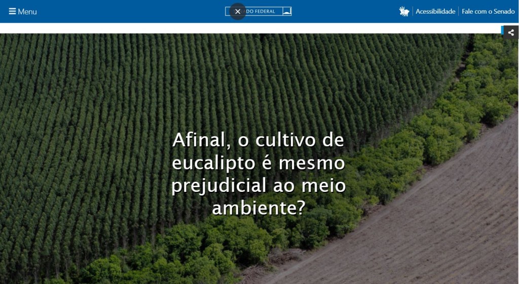 Escrita pelo jornalista Ricardo Westin, a reportagem da Agência Senado mostra que, em comparação com outras monoculturas, os cultivos comerciais de árvores como o eucalipto e o pínus produzem poucos impactos ambientais negativos e podem até mesmo ter efeitos positivos, desde que a técnica e o local sejam apropriados. Eles recuperam áreas degradadas de pastagem, capturam carbono da atmosfera e protegem a fauna do entorno.