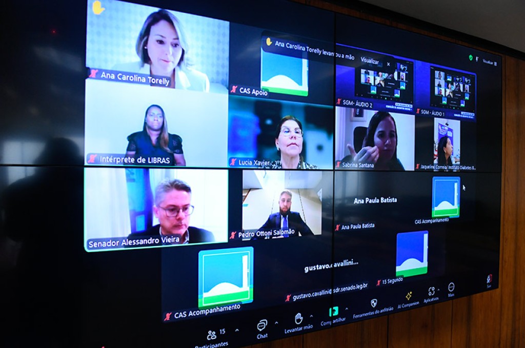Antes de iniciar sua exposição, a advogada e nutricionista Ana Carolina Torelly exibiu um vídeo em que a estudante de medicina Maria Eduarda Dantas, portadora de diabetes tipo 1, expõe os desafios e a realidade de quem tem a doença, além de defender a aprovação do PL 2.687/2022.