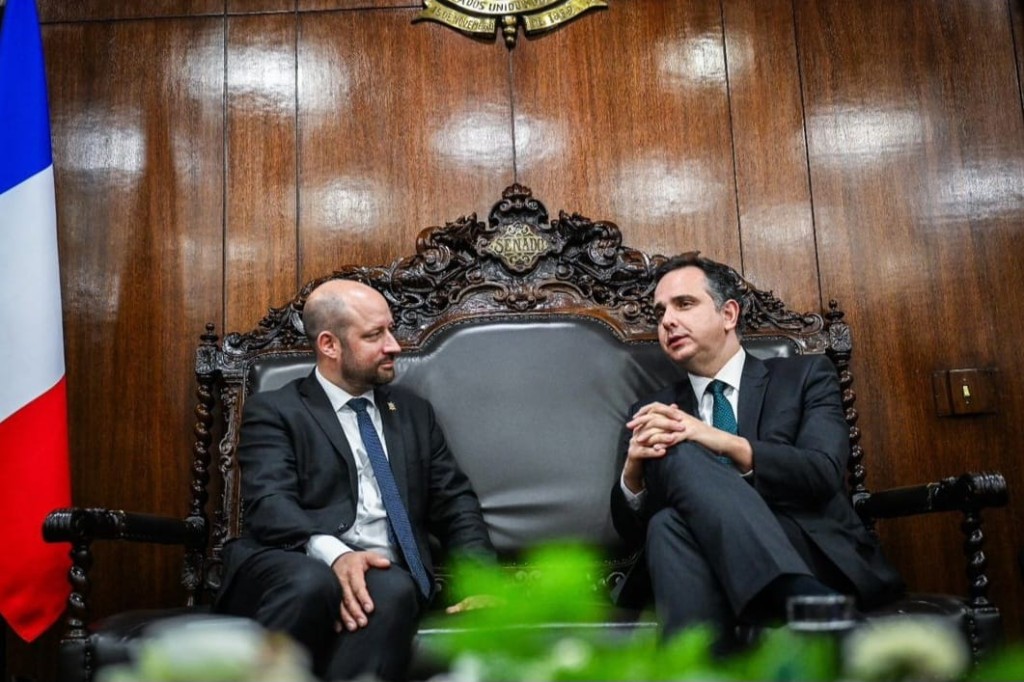 “Citei que um novo levantamento mostrou queda de 30% do desmatamento na Amazônia, e o projeto de lei que regulamenta o mercado de crédito de carbono, que deve ser votado em breve pelos senadores brasileiros”, disse Pacheco pelas redes sociais. Os senadores brasileiros ainda foram convidados para as celebrações no Parlamento da França, em 2025, dos 200 anos das relações diplomáticas entre as duas nações.