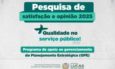 A Prefeitura de Lucas do Rio Verde reforça o convite à população para participar da pesquisa de opinião sobre os serviços públicos ofertados pela administração municipal,...