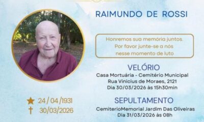 Corpo do pioneiro, que faleceu aos 94 anos, será sepultado amanhã, no Jardim das Oliveiras Sorriso se despede, neste 30 de março, de um dos homens...