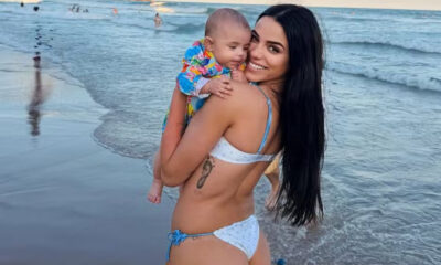 Key Alves curtiu neste domingo (19), um momento especial ao levar a filha, Rosamaria, à praia pela primeira vez. A menina nasceu em dezembro de 2025...